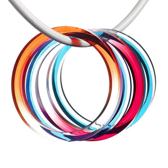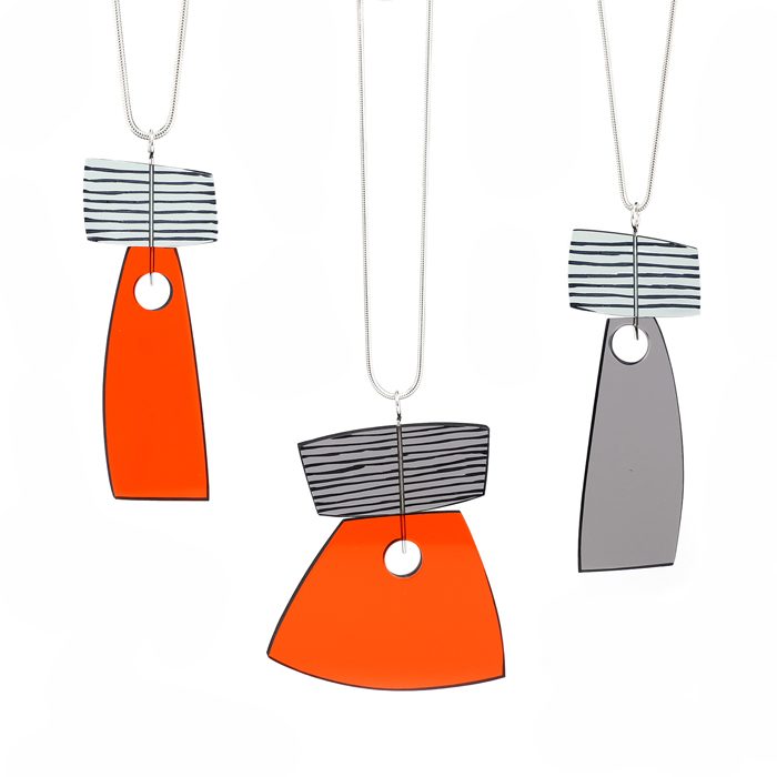 Sarah Packington designs and hand makes colourful and contemporary dyed acrylic jewellery at Rosehill Workshop in Brighton. She studied Wood, Metal, Ceramics and Plastics BA (hons) at Brighton Polytechnic, graduating in 1991. Sarah’s most recent award was ‘Best in Show’ at Craft Festival Cheltenham in 2025.