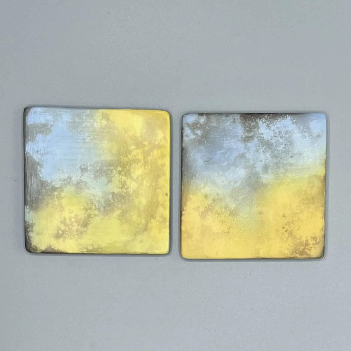 Handmade and decorated with refined metal oxide colours then smokefired, these coasters are high fired and therefore strong.