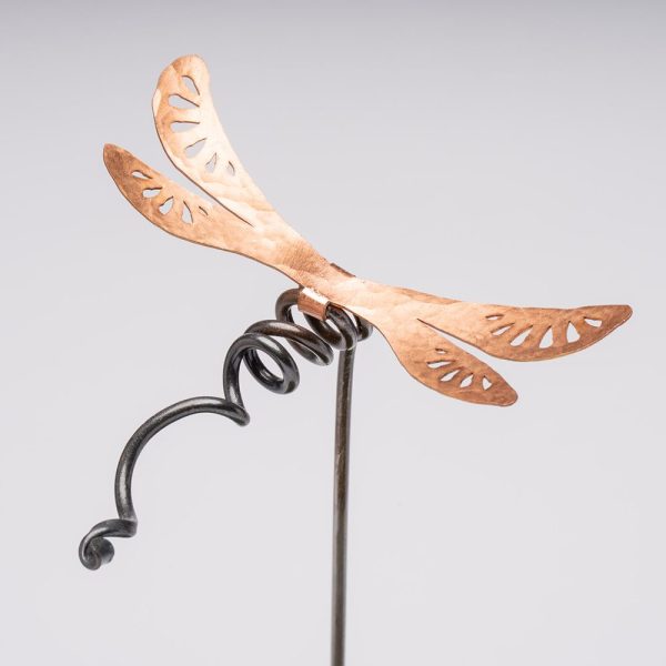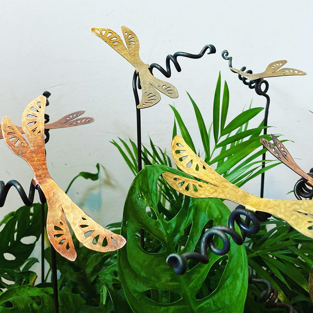 Perfect accompaniment for a house plant, these lil stem dragonflies are hand forged steel or copper with laser cut, planished wings.